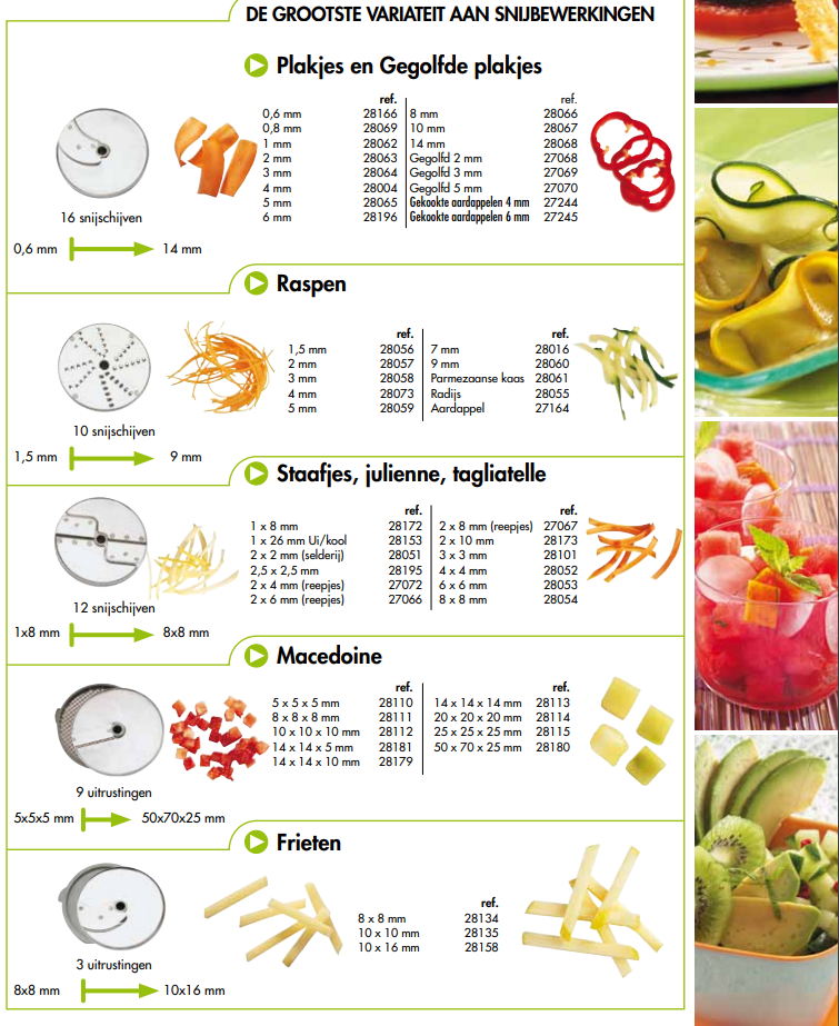 Een ronde goot (Ø 58 mm) speciaal voor lange of broze groenten (bijv. courgette, komkommer, champignons) met een opmerkelijke snijprecisie.