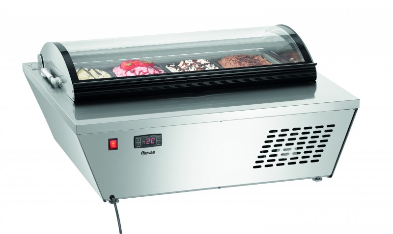 Voor uw individuele ijsspecialiteiten - Met de 4 uitneembare 6,5-liter containers is de ijsvitrine de compacte, ruimtebesparende oplossing voor de dessertbereiding in alle cateringkeukens.