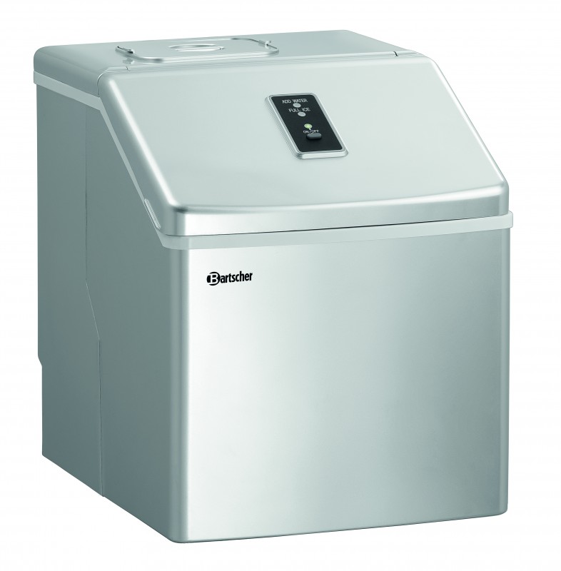 Compact apparaat voor de productie van heldere ijsblokjes. Bijzonder geschikt voor de kleine catering, bijv. bij de bar alsook voor particulier gebruik.