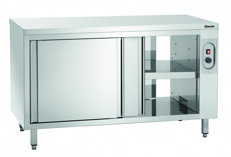 De warmkast met een breedte van 1,4 meter biedt een traploos instelbare, verwarmde opbergruimte met bediening aan beide kanten. Het robuuste oppervlak van roestvrij staal vormt tegelijkertijd een solide werkelement in de keuken.