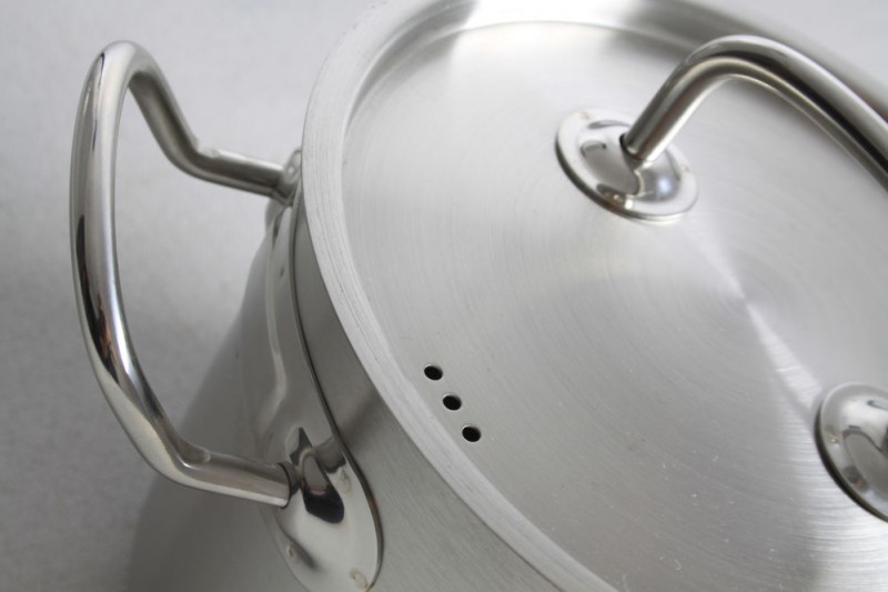 Gesloten sandwichbodem. Sandwich bodem (roestvast staal/aluminium/chroomstaal) combineert de hitte-eigenschappen van aluminium met de duurzaamheid van roestvast staal en de magnetische eigenschappen van chroomstaal die inductiekoken mogelijk maakt. Gesatineerde afwerking aan de buitenzijde. Stevige, op meerdere punten gelaste, koelblijvende handgrepen.