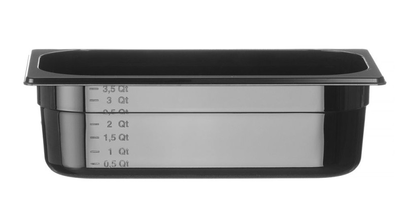 Hoogwaardige professionele Gastronorm producten gemaakt van zwart polycarbonaat. Reuk- en smaakvrij.