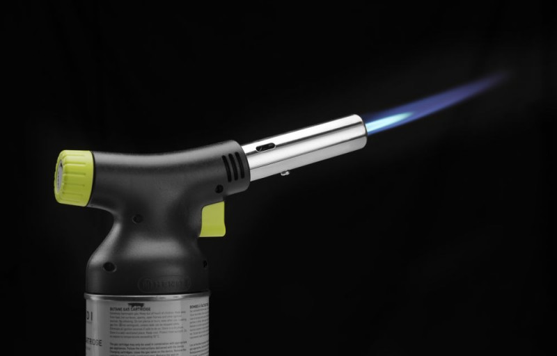 Ontworpen met chef-koks in gedachten door Robert Bronwasser. Deze koksbrander is een genot om te gebruiken dankzij het stijlvolle matzwarte ontwerp met groene accenten en de ergonomische grip. De koksbrander kan eenvoudig en stevig aan het gasbusje worden bevestigd (het is mogelijk om deze te vervangen nadat het gas op is) en bedekt de hele bovenkant van de bus.