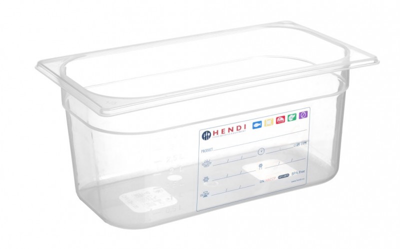 Gastronorm bakken los - deksels niet inbegrepen. Luchtdicht afsluitbaar. Smaak- en reukvrij. Deksels en deksel clips (groen, geel, blauw, rood of paars volgens HACCP normen) los verkrijgbaar. Met slijtvast etiket voor voedsel opslag registratie. Speciale horecastiften niet inbegrepen.