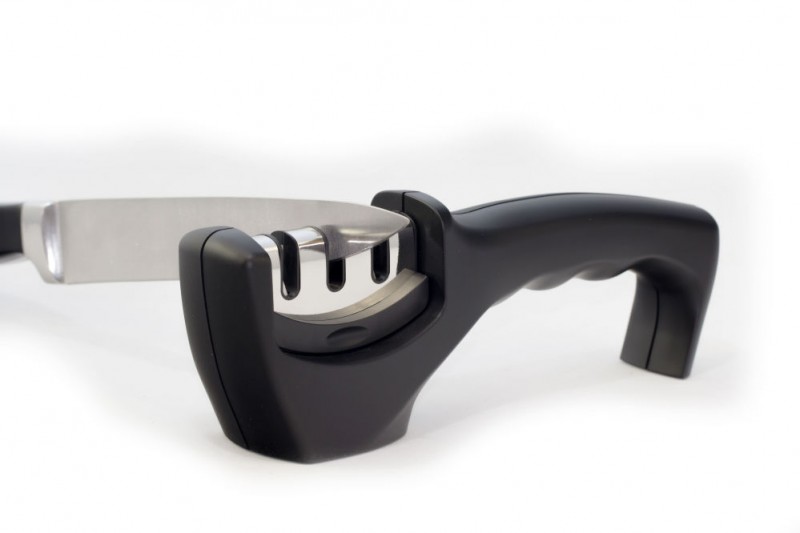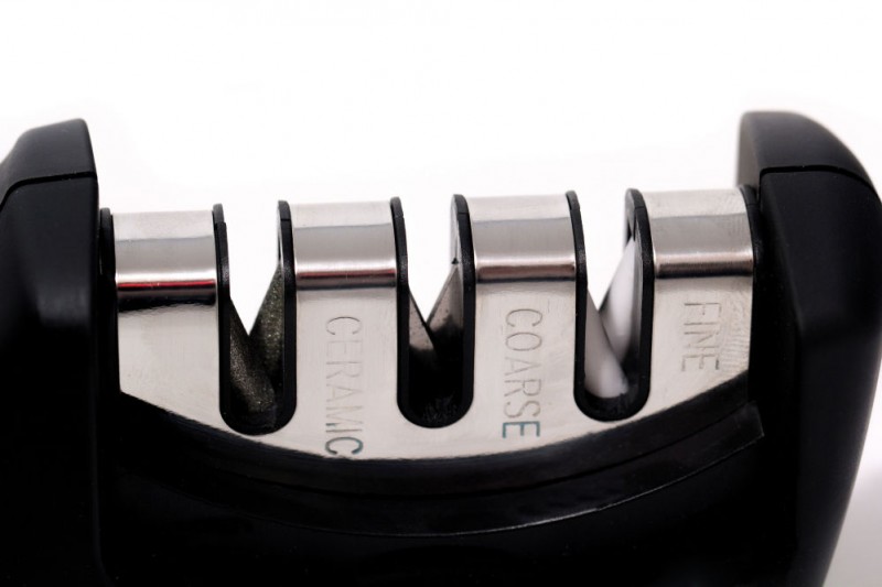 Ergonomische handgreep en antislip voet voor veilig en comfortabel gebruik. 3 functies voor het slijpen van diverse messen, ook keramische. COARSE: carbide slijper brengt nauwkeurig een snijvlak aan. FINE: gekruiste keramische staafjes voor professioneel slijpen. CERAMIC: gekruiste diamantstaafjes voor keramische messen. Niet geschikt voor gekartelde messen of scharen.