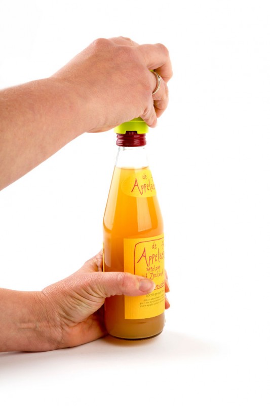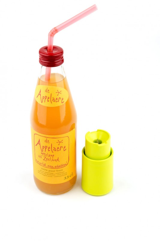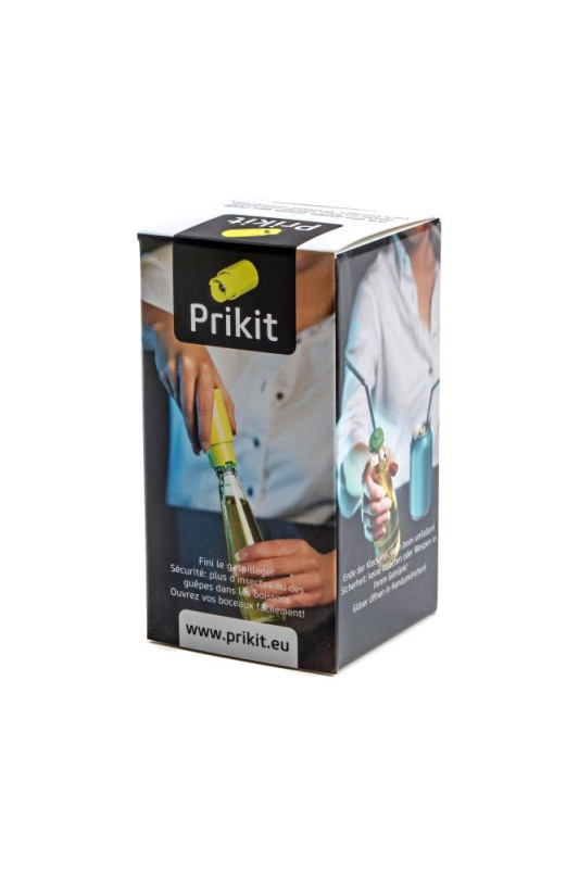 “Prikit”. Perforeert eenvoudig kroonkurken en blikjes met een ø6,5 mm gat. Een rietje door het gat steken houdt insecten uit de drank. Vermindert morsen als een drankje omvalt. Geschikt voor 6 mm biologisch afbreekbare rietjes.