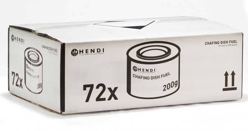 200 grams blikje voor chafing dish. Brandduur: ≈ 3 uur.