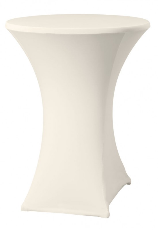 Stof: Effen Jersey 160 g/m². 90% polyester / 10% elastaan. Strijken niet nodig. Past op bartafels met een tafelblad van ø70 cm.