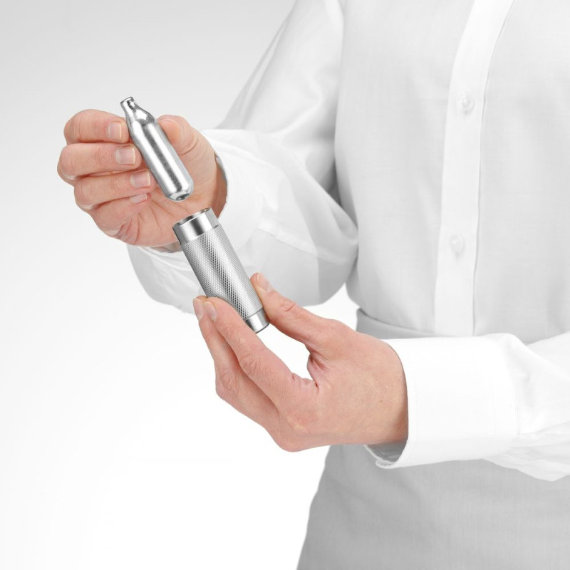 Maakt heerlijke slagroom, mousses, desserts, koude schuimen en sauzen in een handomdraai Ideaal voor garneren van cappuccino, koffie, shakes en ijs. Geschikt voor warme sauzen tot 70°C. Inhoud blijft tot 14 dagen vers in de koelkast. Inclusief 3 roestvast stalen spuitmondjes. Slagroompatronen (N₂O) vereist voor gebruik, niet inbegrepen.
