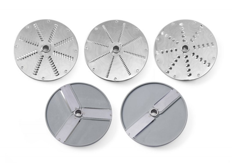 – Schijfjes met 5 bladen voor verschillende snijresultaten: coupes van 2 en 4 mm en coupes van 3, 4, 5 en 7 mm,