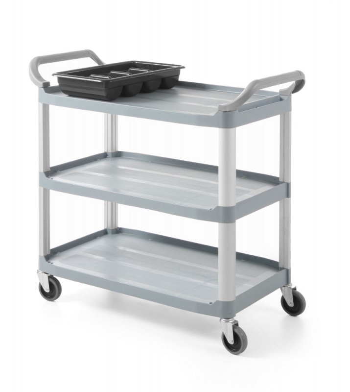 Ontworpen voor restaurants, bars, horecagelegenheden waar het nodig is om snel, efficiënt en veilig tafelgerei op te ruimen. Polypropyleen legplanken, aluminium frame. Eenvoudig te reinigen.
