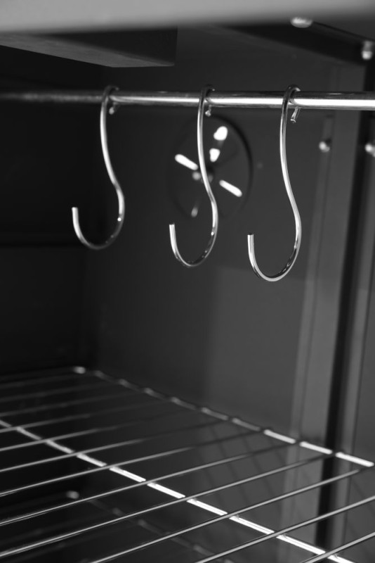 De rookoven is ideaal voor het roken en bereiden van vis, vlees, ham en groenten. Gemaakt van roestvast staal met magnetisch sluitende dubbel geïsoleerde deur. Temperatuur in te stellen via een thermostaat, geïntegreerde thermometer in de deur. Voorzien van een ventilatieopening aan de achterzijde. Wordt geleverd met 3 stuks 400x279 mm roosters en beugel met 3 haken.