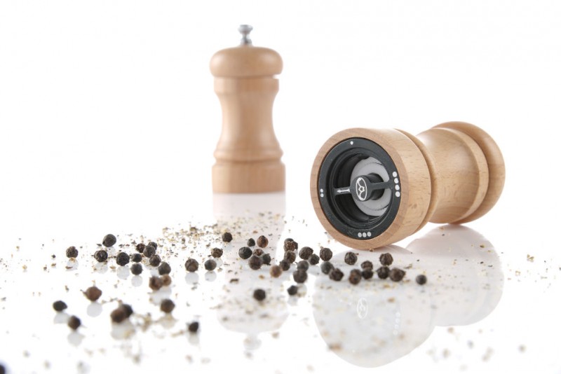 Duurzaam keramisch maal mechanisme, de precieze plaatsing van het maalwiel laat een ruimte tussen de tanden zodat slijtage verminderd wordt. Pepermolen voorzien van een uniek mechanisme voor het instellen van de maalgraad, instelbaar in 4 stappen van fijn tot grof. De dop is eenvoudig te verwijderen voor navullen, de spanning van de montageschroef heeft geen invloed op de maalgraad van de pepermolen. Beschikbaar met het uiterlijk van beukenhout (licht) of walnotenhout (donker).