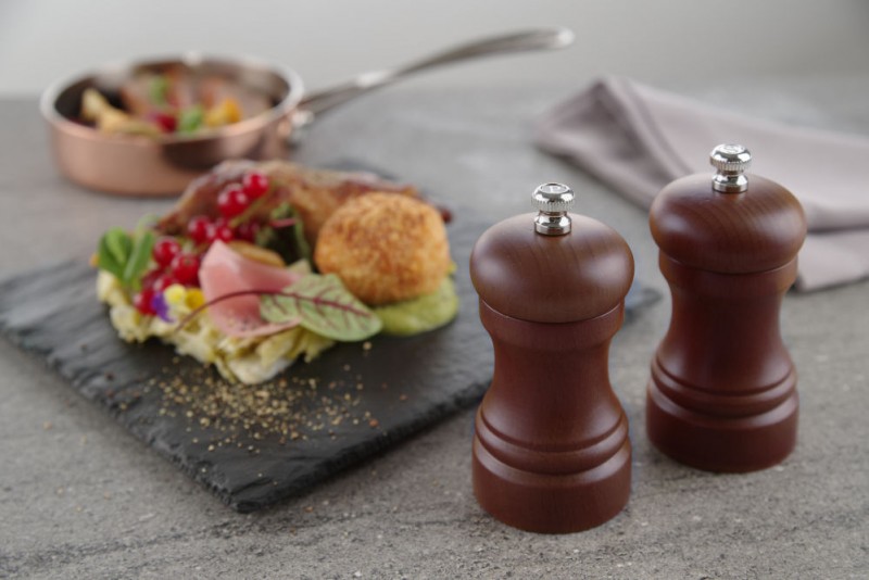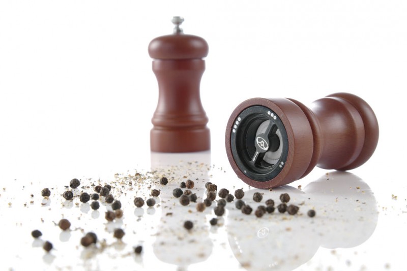 Duurzaam keramisch maal mechanisme, de precieze plaatsing van het maalwiel laat een ruimte tussen de tanden zodat slijtage verminderd wordt. Pepermolen voorzien van een uniek mechanisme voor het instellen van de maalgraad, instelbaar in 4 stappen van fijn tot grof. De dop is eenvoudig te verwijderen voor navullen, de spanning van de montageschroef heeft geen invloed op de maalgraad van de pepermolen. Beschikbaar met het uiterlijk van beukenhout (licht) of walnotenhout (donker).