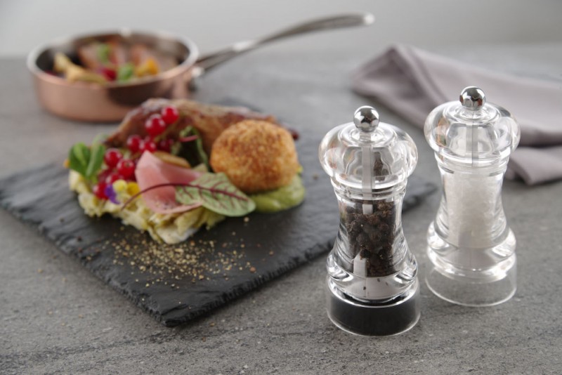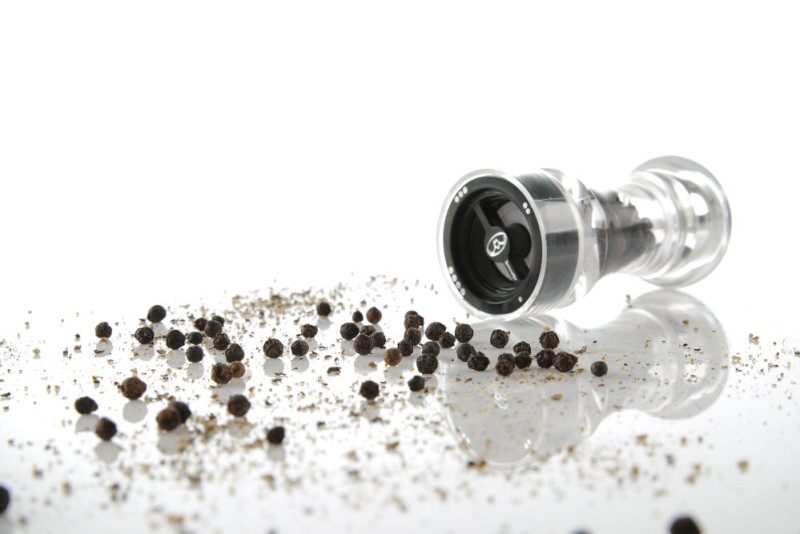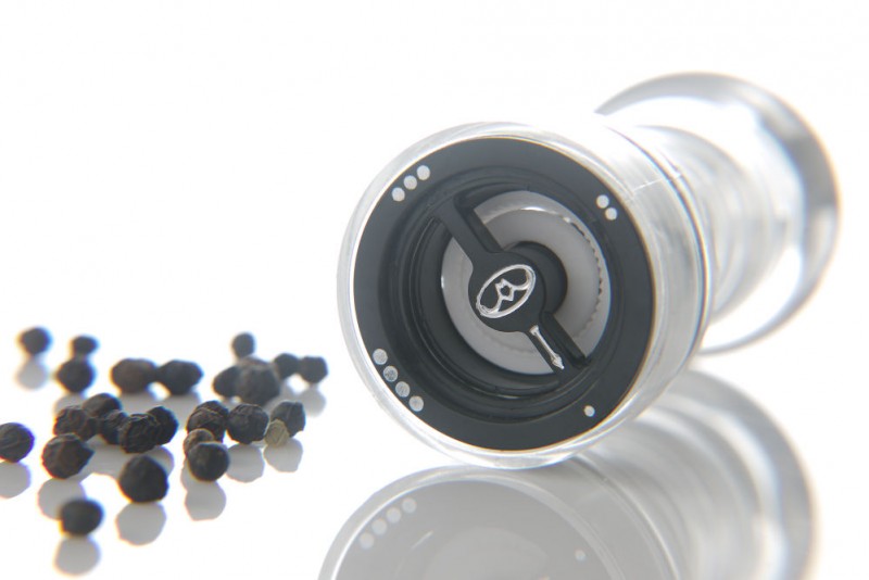 Gemaakt van transparant kunststof (PMMA). Duurzaam keramisch maal mechanisme, de precieze plaatsing van het maalwiel laat een ruimte tussen de tanden zodat slijtage verminderd wordt. Pepermolen voorzien van een uniek mechanisme voor het instellen van de maalgraad, instelbaar in 4 stappen van fijn tot grof. De dop is eenvoudig te verwijderen voor navullen, de spanning van de montageschroef heeft geen invloed op de maalgraad van de pepermolen.