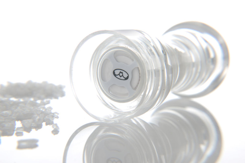 Gemaakt van transparant kunststof (PMMA). Duurzaam keramisch maal mechanisme, de precieze plaatsing van het maalwiel laat een ruimte tussen de tanden zodat slijtage verminderd wordt. Het maal mechanisme van de zoutmolen is niet instelbaar, dit levert consistente resultaten op. De dop is eenvoudig te verwijderen voor navullen, de spanning van de montageschroef heeft geen invloed op de maalgraad van de pepermolen.