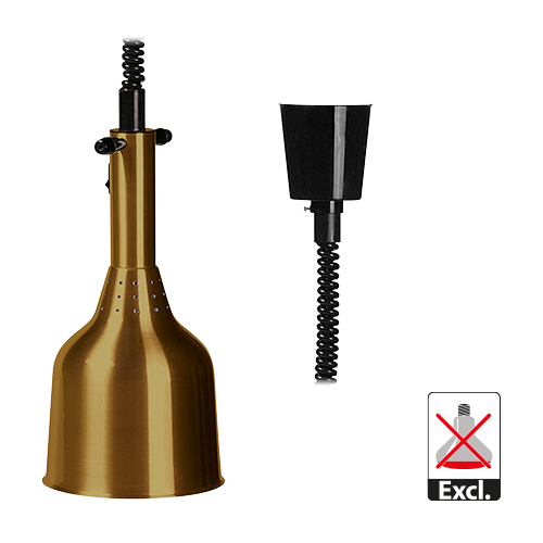 warmhoudkap, koper, met hoogte instelbaar snoer tot max. 180cm, voorzien van handgrepen en schakelaar, geeft onmiddellijk directe hitte, verschaft een doordringende warmte zonder dat het oppervlakte van saus of jus stolt, makkelijk te installeren, veilig in gebruik, wordt zonder lamp geleverd