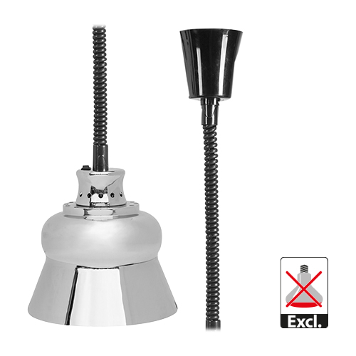 chroom, met hoogte instelbaar snoer max 180cm, voorzien van schakelaar, geeft onmiddellijk directe hitte, verschaft een doordringende warmte zonder dat het oppervlakte van saus of jus stolt, eenvoudig te installeren, wordt zonder infrarood lamp geleverd