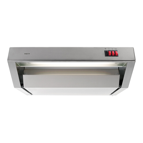 met ingebouwde motor, voorzien van een 3-standenschakelaar, verlichting, controlelamp, roestvrijstalen onder plateau en roestvrijstalen vetfilter, de wasemkappen werken volgens het rand-afzuigsysteem waardoor een hoger rendement wordt verkregen, alle types zijn voorzien van een thermocontact dat bij oververhitting de stroom uitschakelt, wordt compleet geleverd met bevestigingsmateriaal