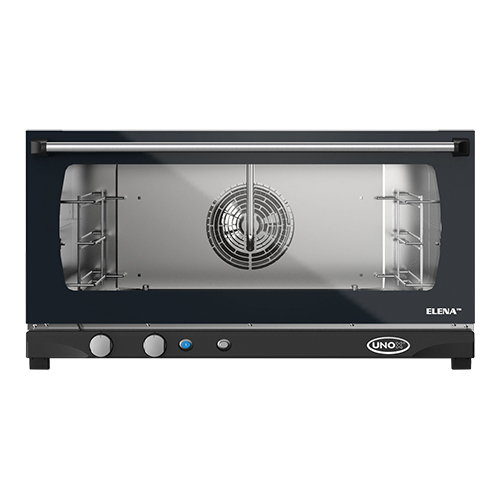 de UNOX Elena Manual is optimaal geïsoleerd en voorzien van draaiknoppen op het controlepaneel met tijdklok, thermostaat en handmatige bevochtiger voor het toevoegen van kleine hoeveelheden vocht in de ovenruimte