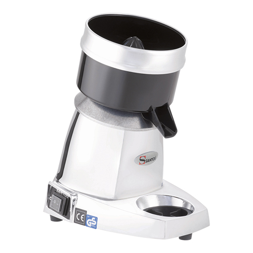 de Santos Novo is uitgerust met een kunststof kom, de motor is luchtgekoeld, alle stroom dragende delen zijn optimaal beschermd tegen aflopend sap, alle met sap in aanraking komende materialen zijn zuur- en smaakbestendig, de Novo is makkelijk te reinigen