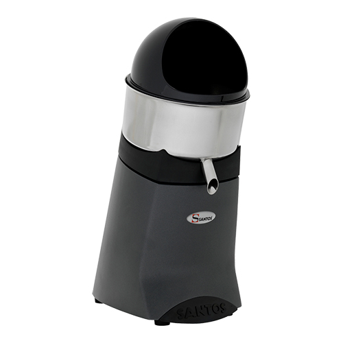 de Santos Jumbo is een citruspers pers met hoge capaciteit voor continu-productie, start automatisch wanneer een citrusvucht op de perskegel wordt geduwd, alle stroom dragende delen zijn optimaal beschermd tegen aflopend sap, alle met sap in aanraking komende materialen zijn zuur- en smaak bestendig, de Santos Jumbo is eenvoudig te demonteren en daardoor gemakkelijk te reinigen