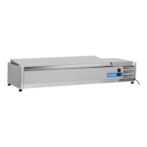 GN maatvoering voor max. 15cm diep, roestvrijstaal, thermostatisch regelbaar +2°C/+8°C, verlichte hoofdschakelaar, wordt zonder GN bakken geleverd, met roestvrijstalen klapdeksel