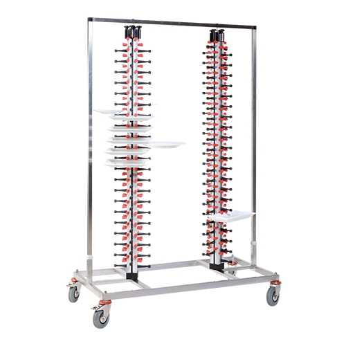 de ideale oplossing om ruimtegebrek in keukens op te lossen, een grote transportcapaciteit voor bijvoorbeeld het direct uit kunnen serveren, voorzien van verstelbare steunen om elk type bord of schaal passend te maken