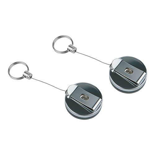 roestvrijstalen kaart- sleutelkoord, eenvoudig te bevestigen aan broek of riem doormiddel van de clip, maximale lengte van het koord 65cm