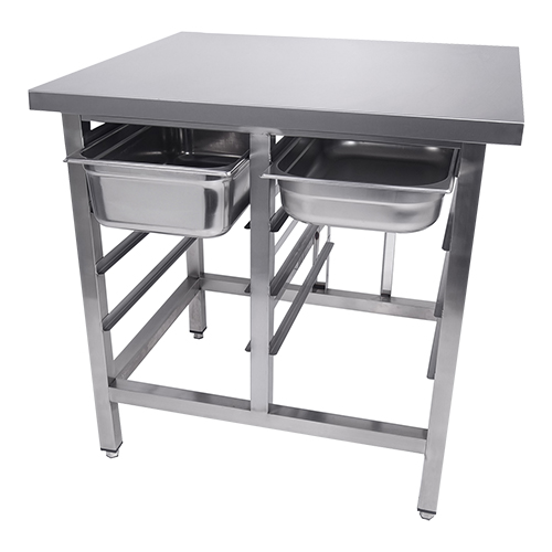 robuuste werktafel uitgevoerd met verstelbare poten, capaciteit 8 regalen 1/1GN