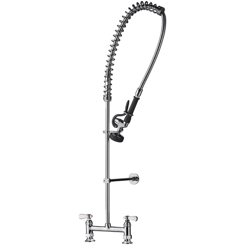 RVS voorspoeldouche met gedeeltelijk draaibare sproeikop om lekkage te voorkomen. Werken met een voorspoeldouche betekend een besparing van 20%. Zowel als monobloc als duobloc verkrijgbaar.