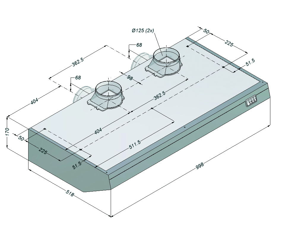 Afmetingen: B 1000 x D 520 x H 170 mm