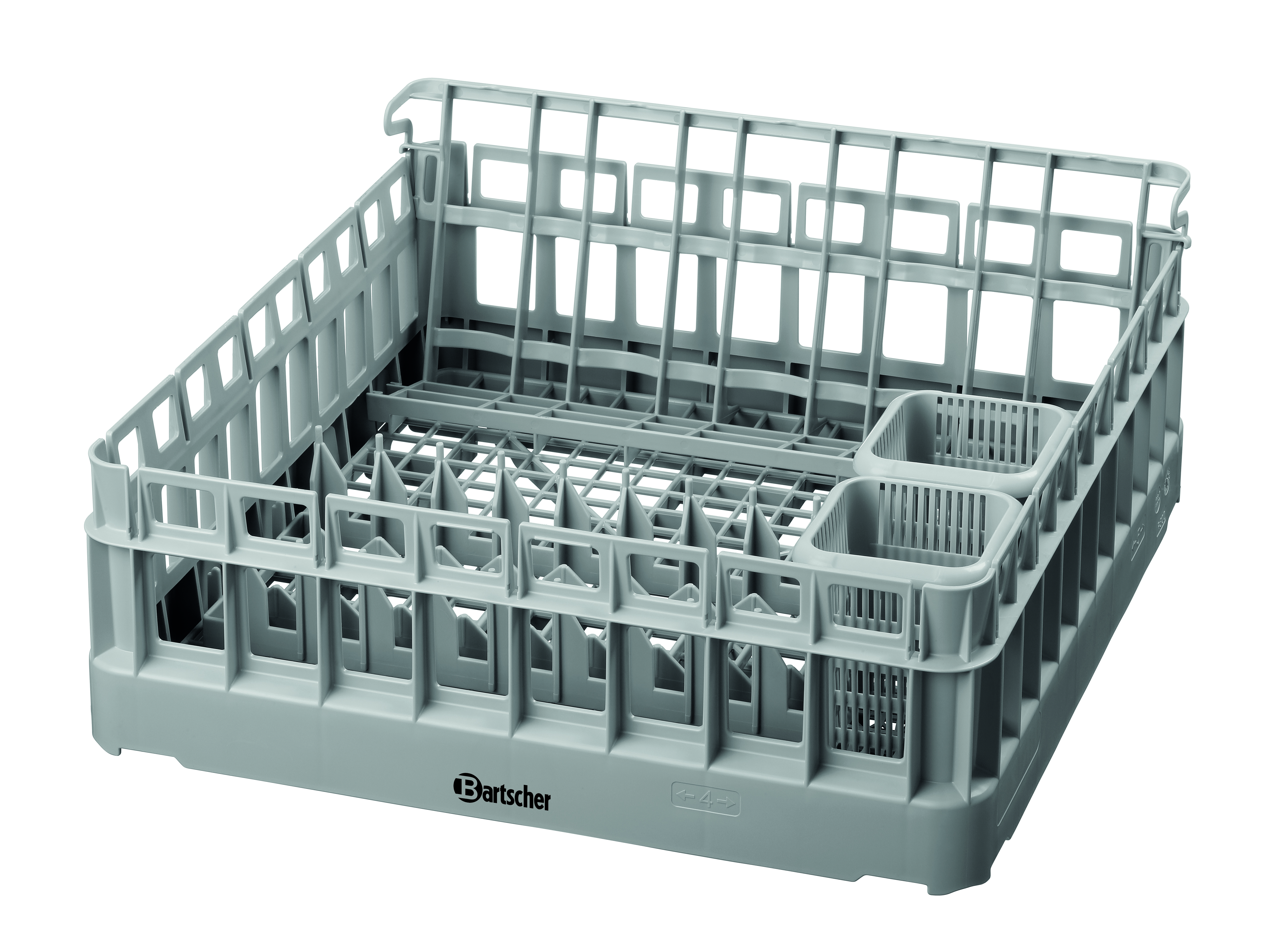 Spoelkorfset bestaande uit: 2 bestekkokers ,1 inzetelement voor glazen ,1 inzetelement voor borden ,1 universele korf
