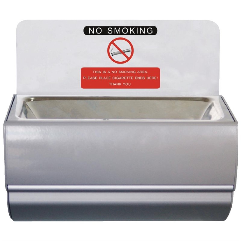 RVS constructie met 2 stickers, voor gebruik in rookruimtes en rookvrije ruimtes. Scharnierende bak kantelt naar voren voor eenvoudig legen. Ideaal voor entreehallen. Geschikt voor montage op elke vlakke ondergrond (montagekit meegeleverd).