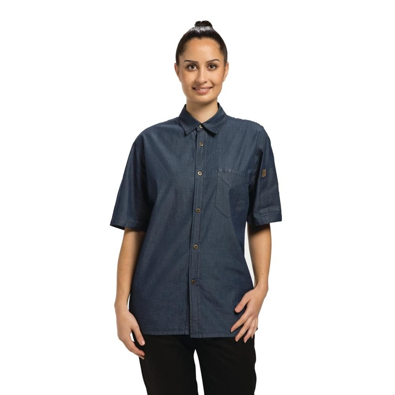 Chef Works Detroit Unisex Denim Shirt Korte Mouw Blauw XL | B074-XL
