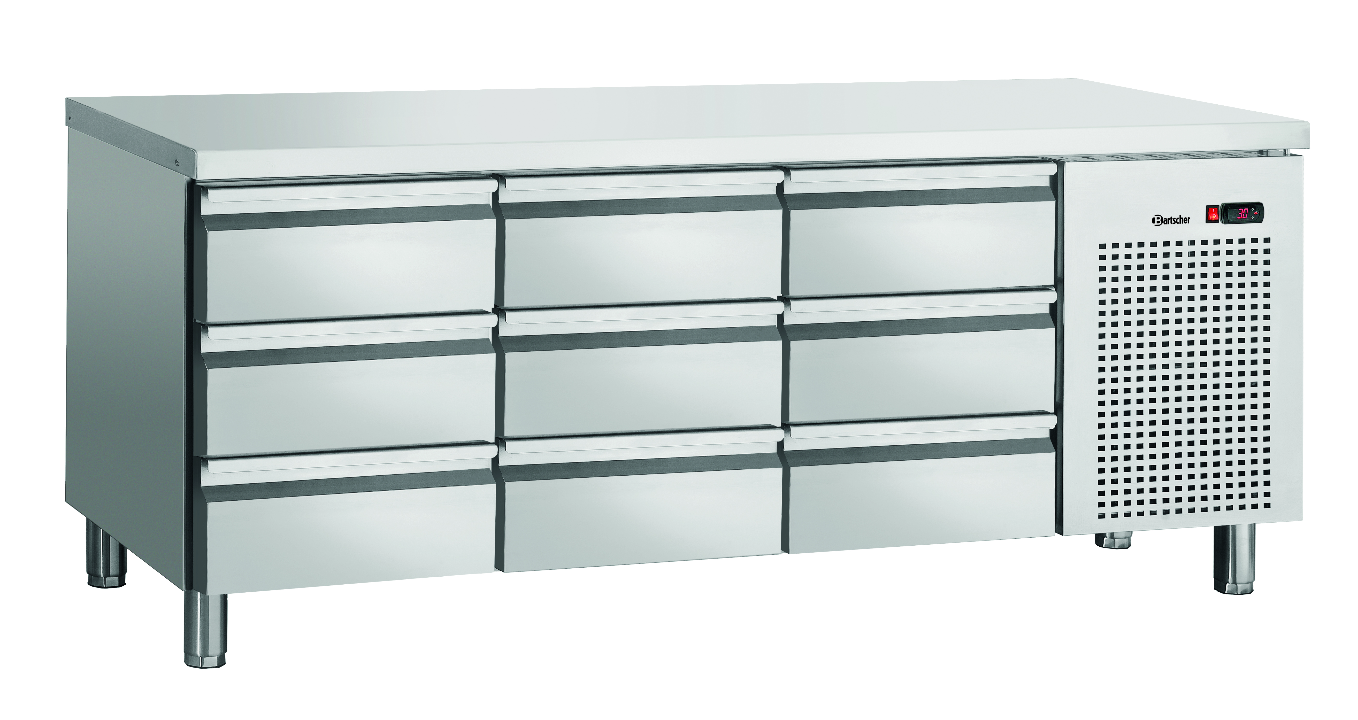 Op aanvraag leverbaar: Koelwerkbank met zwenkwielen
