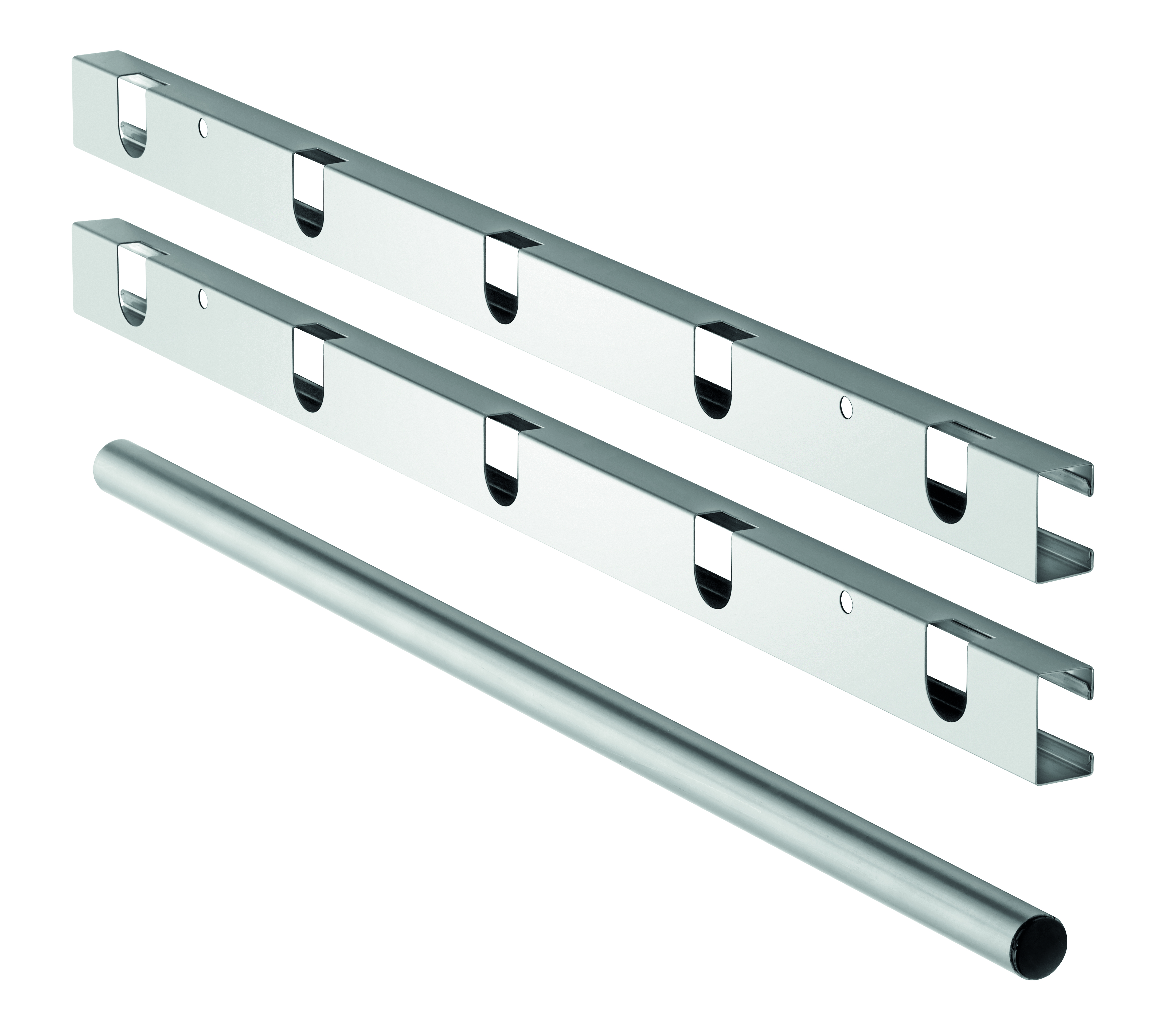 Set bestaande uit: 2 steunrails ,1 ophangbuis (in 5 posities horizontaal verstelbaar)