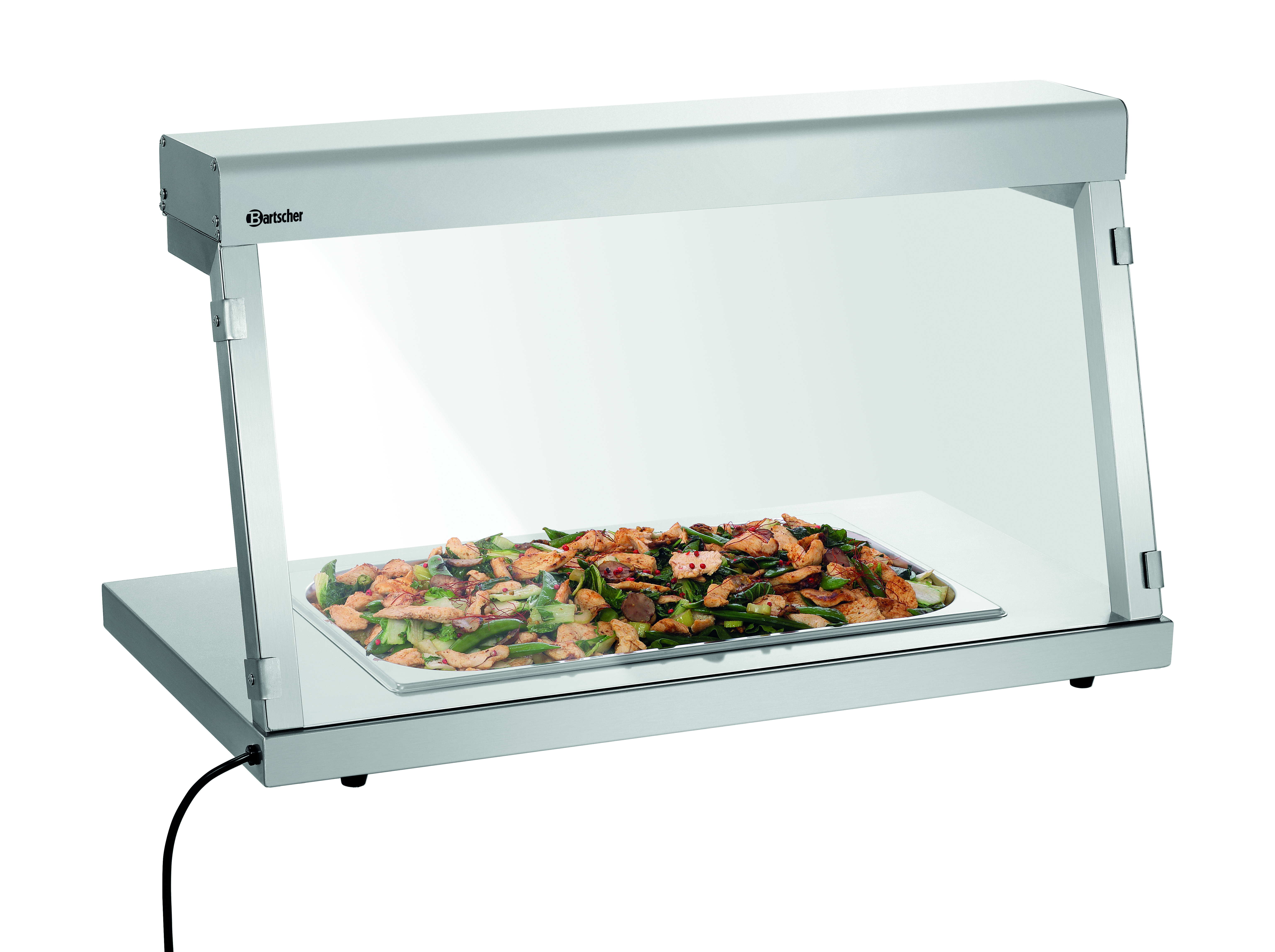Hetzij bij het buffet, in de keuken of in het cateringbereik - de warmtebrug met hoestbescherming en 1/1 GN-uitsparing maakt veilig laden en bijvullen mogelijk. Een infrarood verwarmingsbuis zorgt voor een gelijkmatig verwarmingseffect.