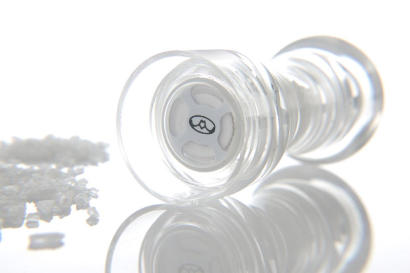 Gemaakt van transparant kunststof (PMMA). Duurzaam keramisch maalmechanisme, de precieze plaatsing van het maalwiel laat een ruimte tussen de tanden zodat slijtage verminderd wordt. Het maalmechanisme van de zoutmolen is niet instelbaar, dit levert consistente resultaten op. De dop is eenvoudig te verwijderen voor navullen, de spanning van de montageschroef heeft geen invloed op de maalgraad van de pepermolen.