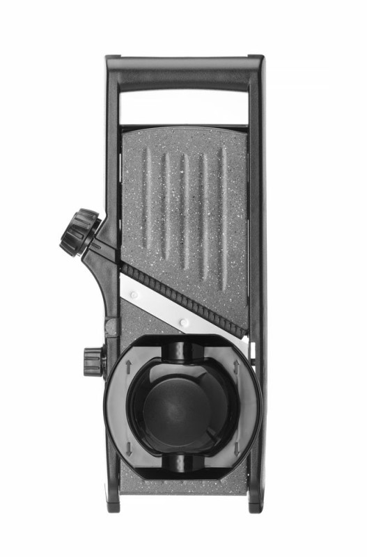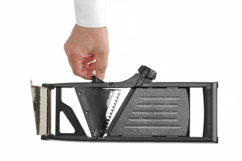 Wordt geleverd met een groentehouder om de vingers te beschermen tijdens het snijden, tevens met mesbeschermers voor veilige opslag.