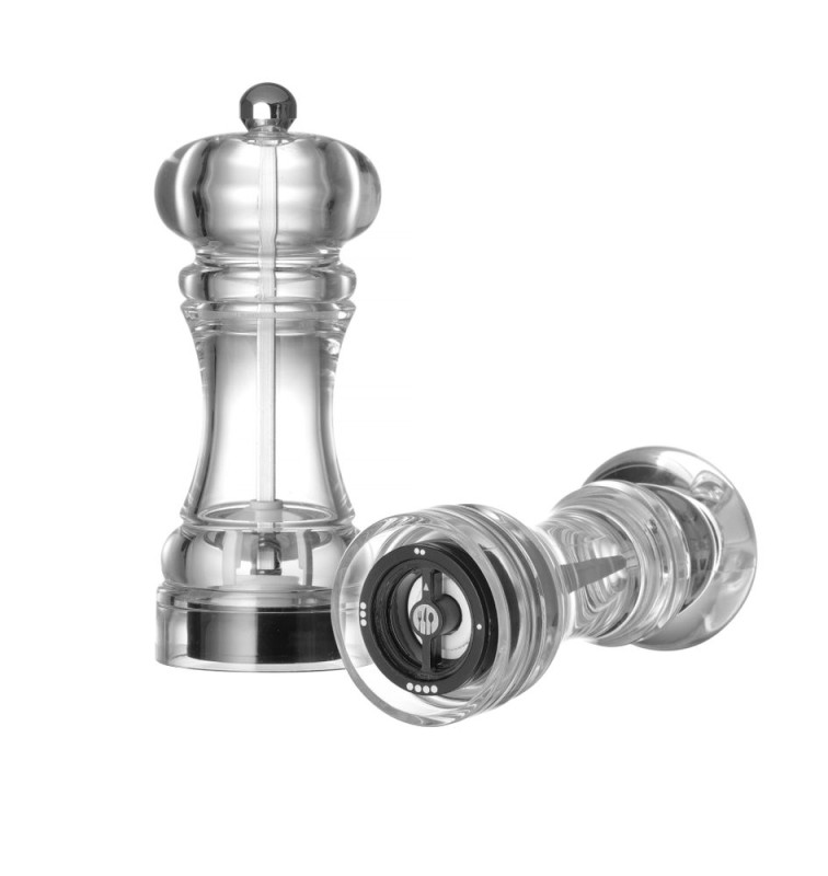 Gemaakt van transparant kunststof (PMMA). Duurzaam keramisch maalmechanisme, de precieze plaatsing van het maalwiel laat een ruimte tussen de tanden zodat slijtage verminderd wordt. Pepermolen voorzien van een uniek mechanisme voor het instellen van de maalgraad, instelbaar in 4 stappen van fijn tot grof. De dop is eenvoudig te verwijderen voor navullen, de spanning van de montageschroef heeft geen invloed op de maalgraad van de pepermolen.