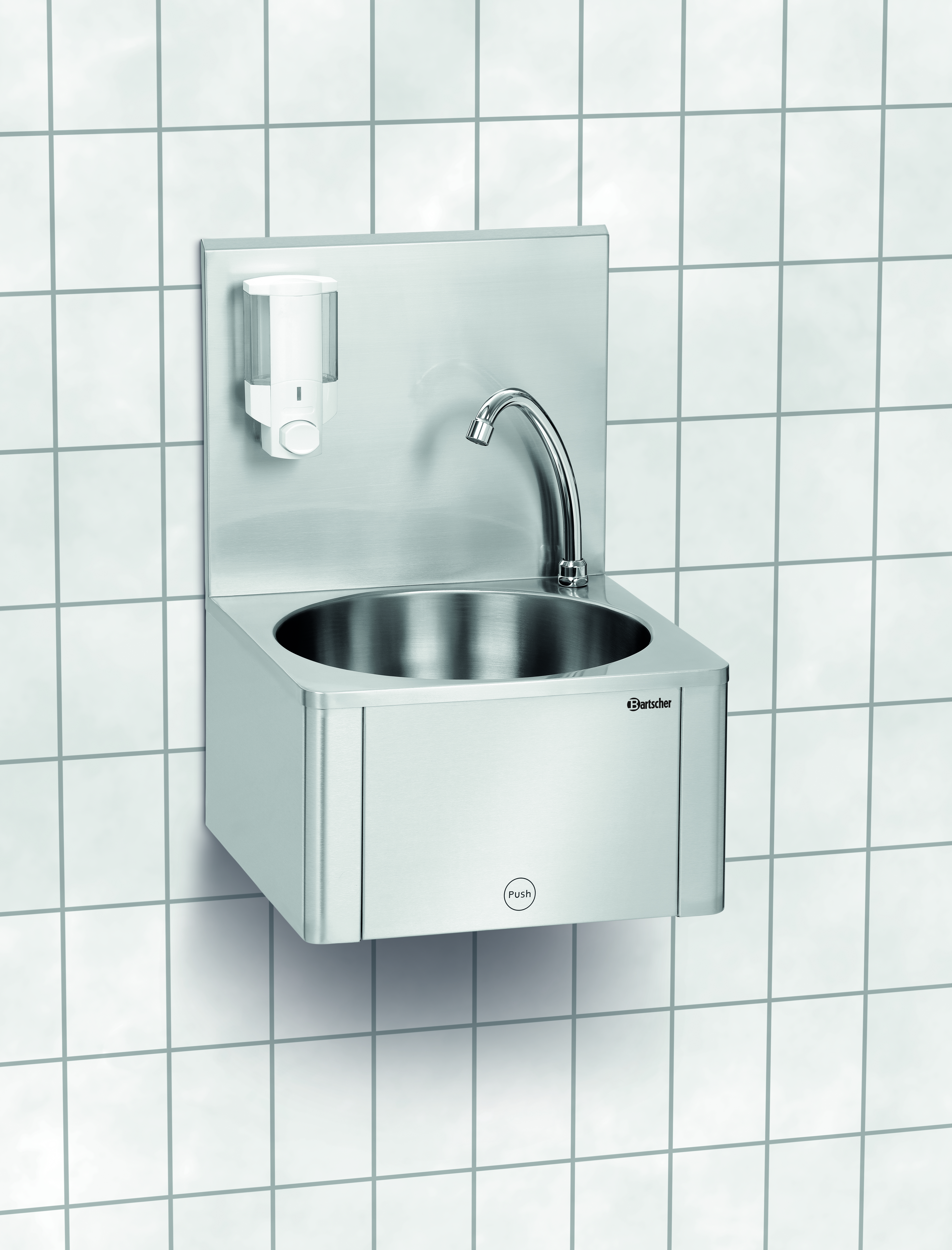 Hygiënisch en ongecompliceerd - het W10-KB Plus handwasbekken met praktische kniebediening en geïntegreerde zeepdispenser biedt de beste hygiënische omstandigheden.