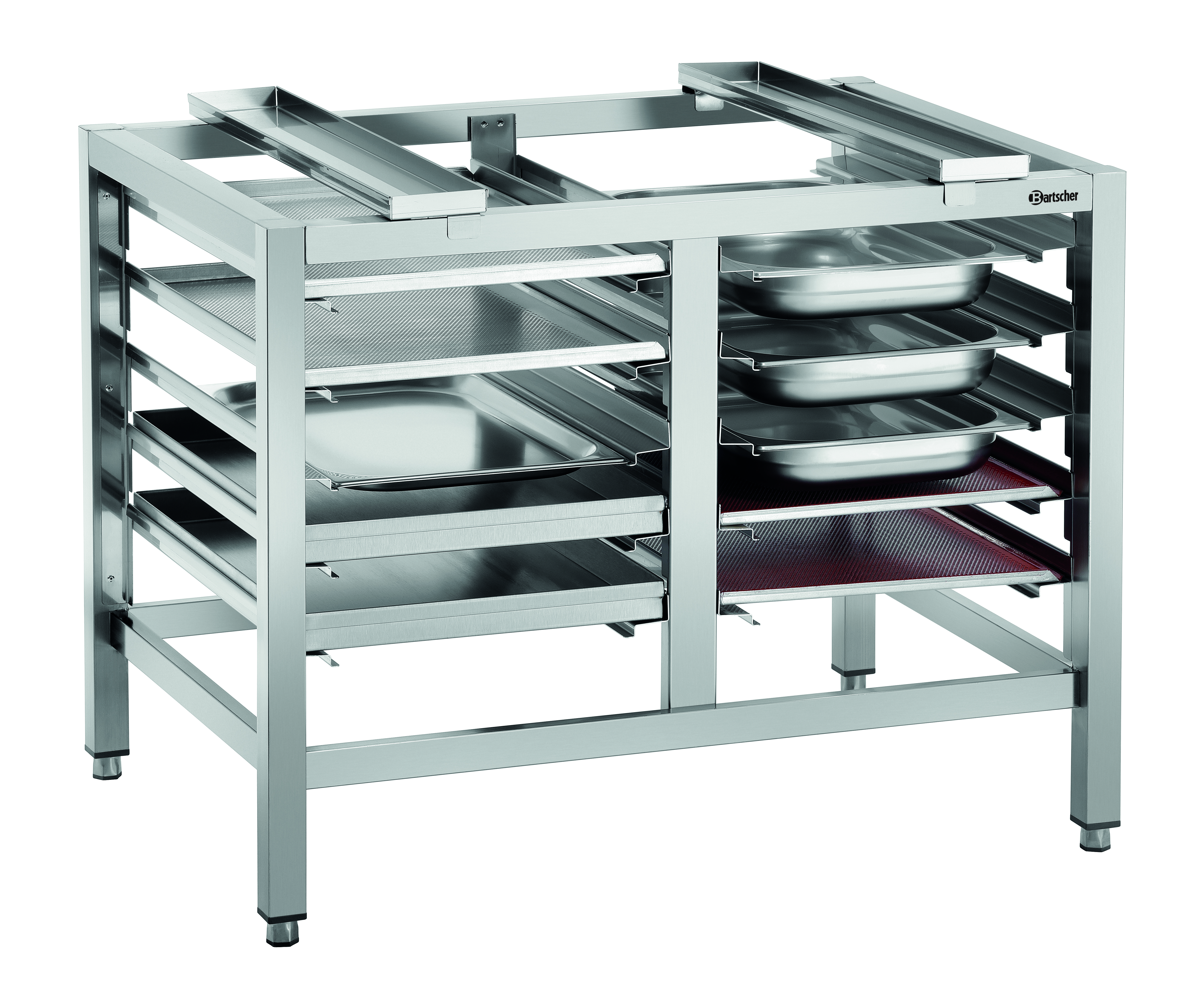 Gastronorm en bakkerijstandaard - het robuuste basisframe voor combi-steamer 1/1 GN van de M- en E-serie biedt ruimte voor 10 roosters en platen in 1/1 GN of 600x400 bakkersformaat.