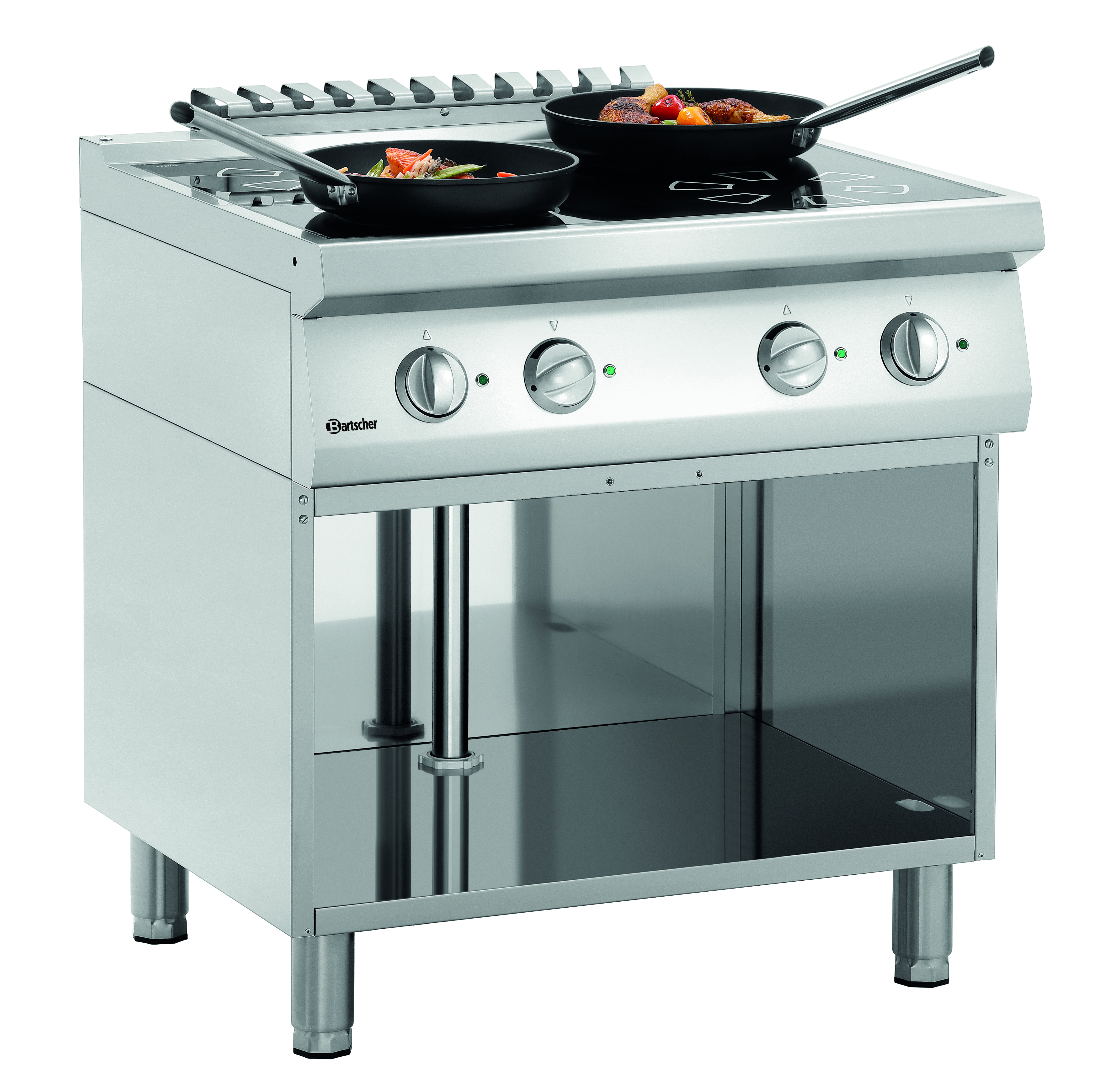 Het inductiefornuis voor keukenprofessionals – met het onmiddellijke verwarmingseffect is het standapparaat met 4 kookplaten dankzij de krachtige 5 kW inductiespoelen direct te gebruiken.